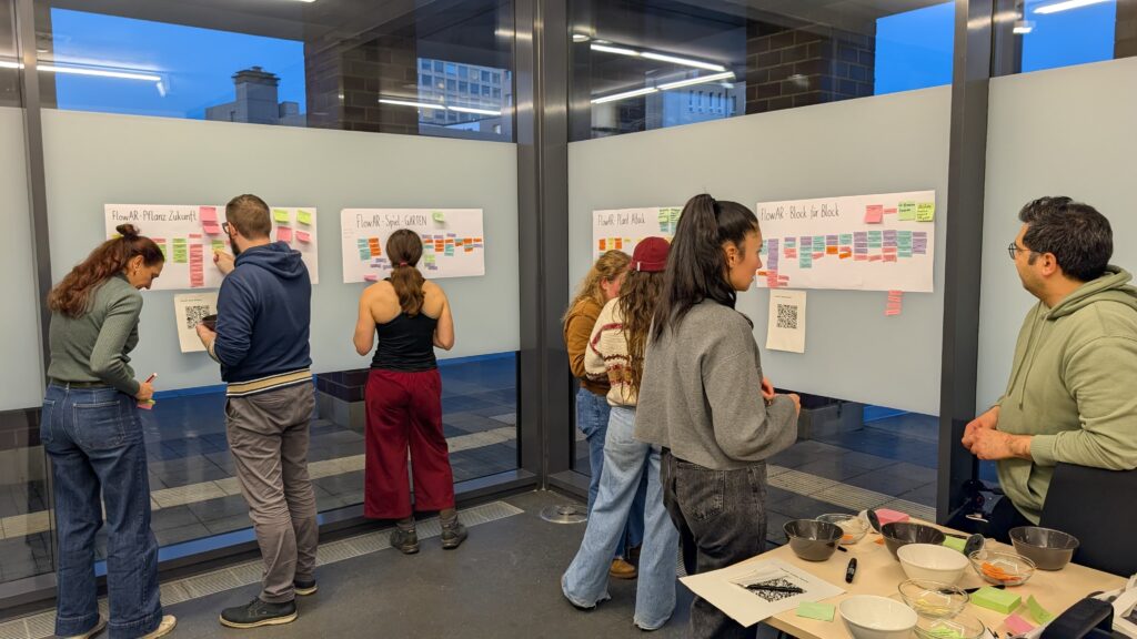 Im Forschungsprojekt flowAR erforschen wir, wie Augmented Reality (AR) gemeinschaftliche Kunst im öffentlichen Raum neu gestalten kann, partizipativ, nachhaltig und